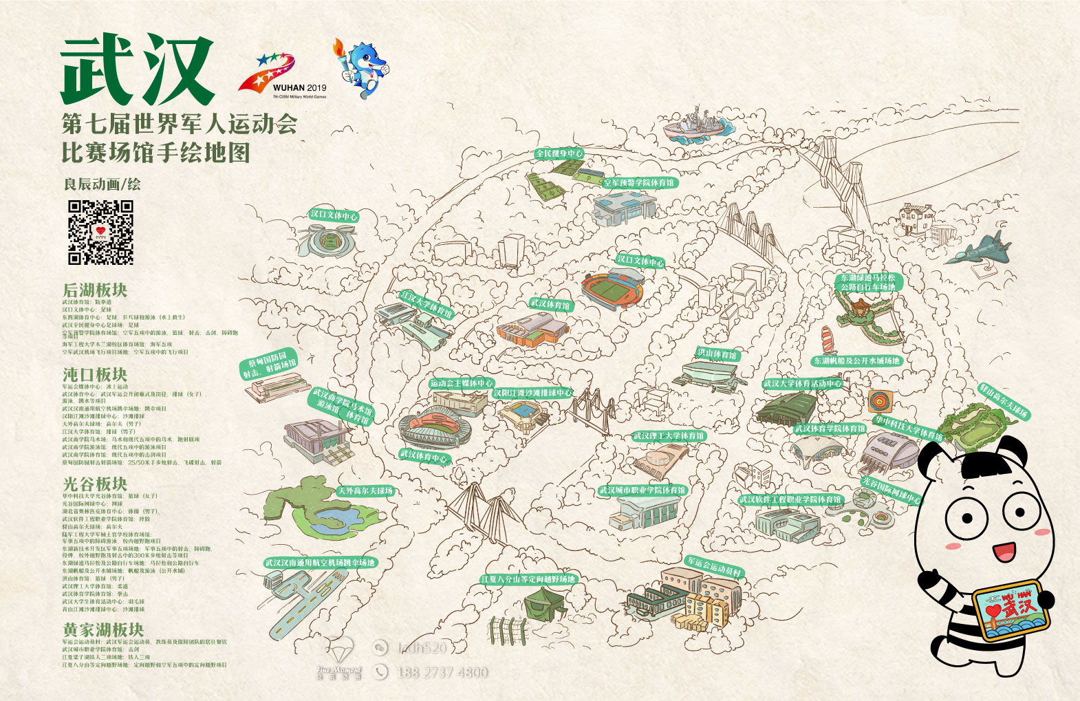 作为武汉本土手绘地图定制设计公司,良辰动画为武汉军运会绘制了风格独特的手绘地图。
