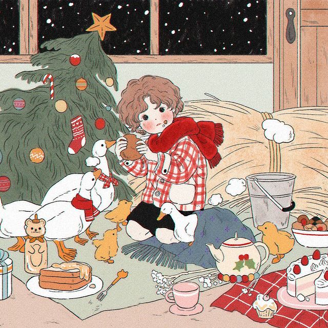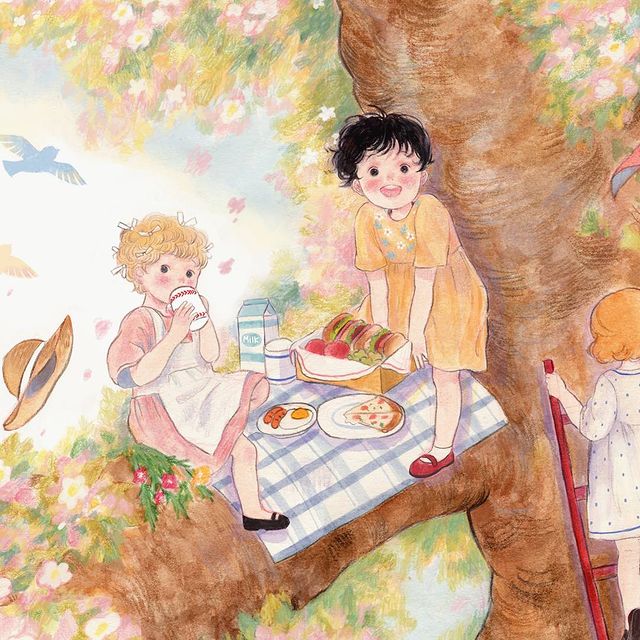 yoovora的作品治愈而温暖,画风清新,角色以孩童、小动物为主,可爱而充满童趣。